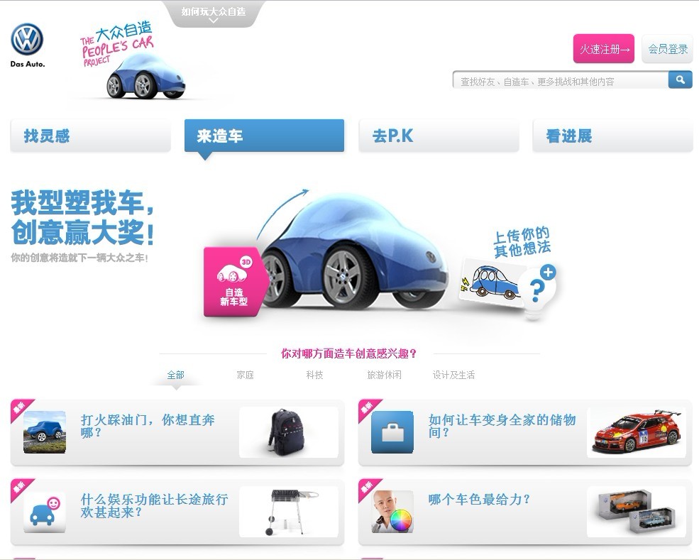 負(fù)責(zé)“大眾自造”項(xiàng)目創(chuàng)意合作的天時(shí)中國公司策略總監(jiān)Devin Beringer說:這可能是汽車界第一個真正意義上的CRM項(xiàng)目。“大眾自造”充分利用了從社交媒體工具到三維建模軟件的新媒體工具,“對汽車愛好者來說,親身參與、重新定義‘大眾汽車’品牌無疑是最令人興奮的事”。
