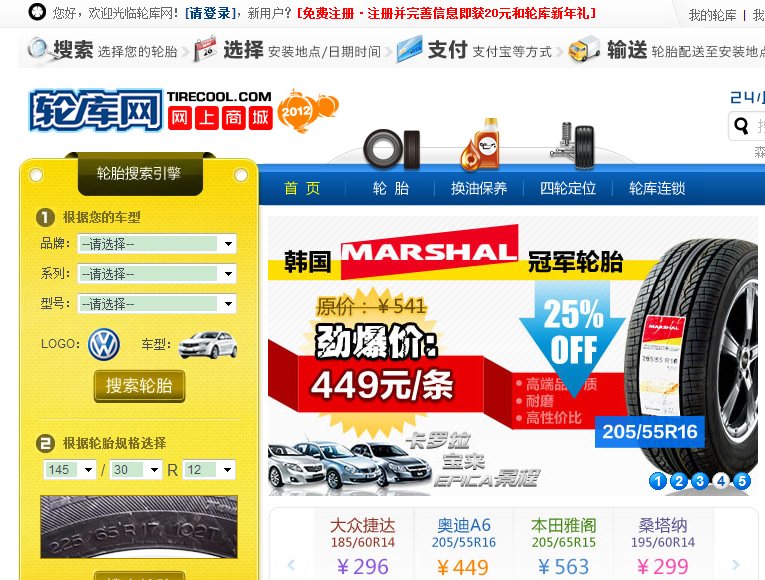 1、設(shè)計(jì)了“輪胎搜索器” 通過車型自動(dòng)查詢您的輪胎。讓對(duì)產(chǎn)品模糊的消費(fèi)者通過系統(tǒng)自動(dòng)定位產(chǎn)品,明確消費(fèi)信息,就利于訂單的生成。很多時(shí)候我們做的網(wǎng)站,消費(fèi)者不知道自己要買的東西在哪里?