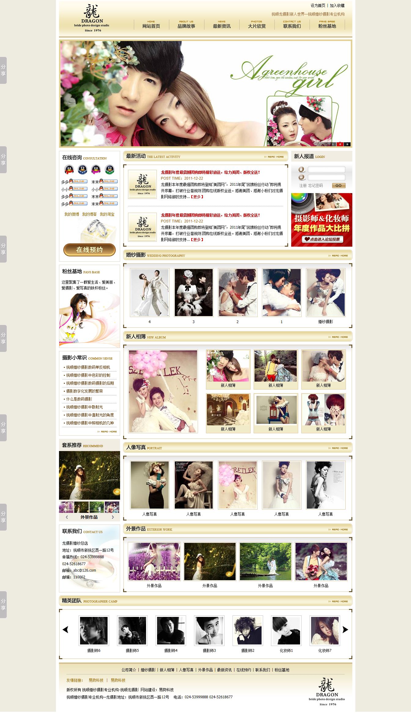 沈陽(yáng)易勢(shì)科技有限公司 網(wǎng)站制作網(wǎng)絡(luò)營(yíng)銷公司 © 2011 , All rights reserved. 公司地址:沈陽(yáng)市鐵西區(qū)貴和街道建設(shè)中路15號(hào)淺草綠閣商務(wù)樓402室婚紗攝影網(wǎng)站案例|沈陽(yáng)網(wǎng)站制作|沈陽(yáng)網(wǎng)站建設(shè)|婚紗攝影網(wǎng)站建設(shè)