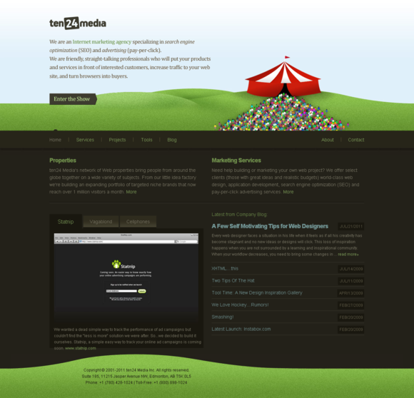 design frontier設計前沿當前位置:首頁>主要服務>網站設計>設計前沿【經驗】強質感高光風格網頁欣賞及其表現(xiàn)手法總結經常能見到這一類的風格的網頁設計作品,它們有如下共同的特點。背景通常是純色的柔和漸變,不添加任何的材質,色塊的邊緣部分通常會添加1像素的高光;在頁面元素的邊緣部分有著強烈的1像素高光;元素表面有如玻璃般的明顯反光;底部和背景接觸的部分經常會設計出倒影。這種風格的設計經常會出現(xiàn)在商業(yè)和企業(yè)的網頁設計中,會給人留下干凈清爽的印象。 我這里將這些常用的表現(xiàn)方法提取了出來,共有6種樣式,分別是:1、鏡面的內容背景;2、光亮的按鈕;3、浮動的圓角水晶按鈕;4、凸出的分割線;5、陰影分割線;6、角橫幅。我將這些元素做成了PSD格式,提供給大家下載,你可以通過查看分層文件來學習如何在photoshop中實現(xiàn)這樣的效果,將它們用在你的設計中。下面是這6種元素的預覽圖以及涉及到這種光亮風格的網頁設計作品案例。