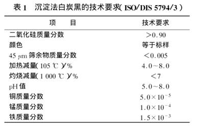 合成白炭黑根據(jù)其生產(chǎn)工藝和特性分為不用的種類,其中沉淀法白炭黑在橡膠行業(yè)應(yīng)用最為廣泛。沉淀白炭黑是采用硅酸鈉水溶液中添加酸的分批式沉淀工藝合成的。在這一工序中形成的是白炭黑一次粒子及其聚集結(jié)構(gòu),通過控制反應(yīng)時間、溫度、pH等參數(shù),可確定白炭黑的比表面積、結(jié)構(gòu)等特性,然后經(jīng)過固液分離、洗滌、?;蚍鬯榈裙ば虮憧缮a(chǎn)出沉淀法白炭黑。沉淀法白炭黑的技術(shù)要求見下表1。