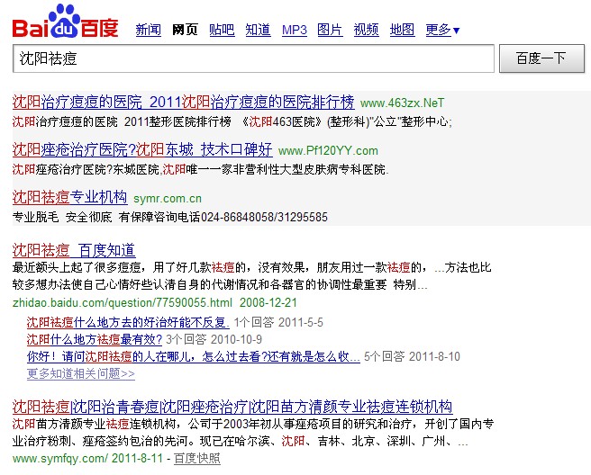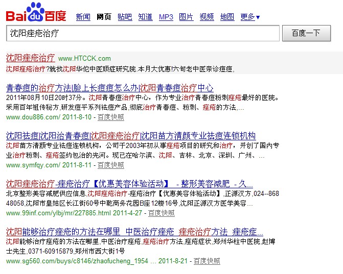 關(guān)鍵詞選擇:沈陽(yáng)祛痘 沈陽(yáng)痤瘡治療 優(yōu)化效果:百度排名第一頁(yè)