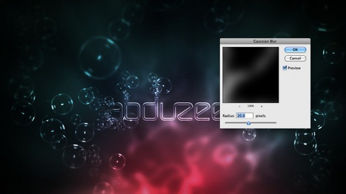 步驟14 選擇文本中的一個(gè)泡沫層,重復(fù)步驟10同樣的方法使圖層的一些部分比其他部分模糊。
