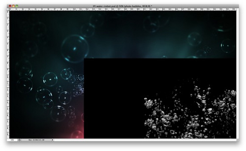 圖16 步驟17 為了使圖片更加現(xiàn)實(shí),你可以添加一些真正的泡沫,在這里我使用的照片來自Shutterstock。氣泡的照片有黑色背景,在這種情況下,改變混合模式為顏色減淡,使黑色因此變得透明。