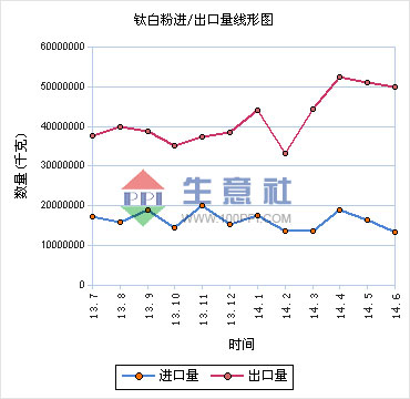 2013年下半年至2014年上半年鈦白粉進(jìn)出口數(shù)據(jù)(圖片來源:生意社)