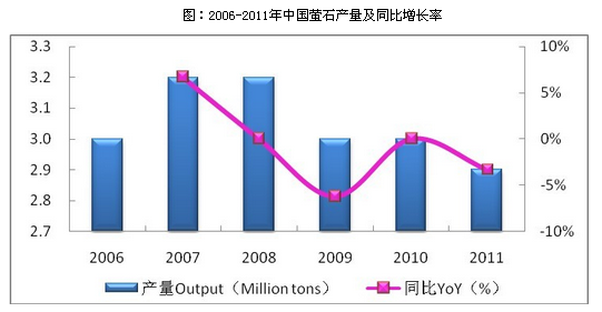 據(jù)了解,目前國內(nèi)螢石生產(chǎn)有證的企業(yè)有2000多家,但近一半的企業(yè)常年停產(chǎn),處于產(chǎn)能過剩狀態(tài);國內(nèi)氟化鋁年產(chǎn)能達到250多萬噸,而每年市場需求量只有65萬噸左右,全行業(yè)開工率不到30%。