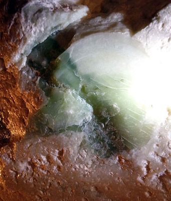 (中國粉體技術網(wǎng)/班建偉)遼寧省丹東市寬甸滿族自治縣近日發(fā)現(xiàn)巨型單體玉石。據(jù)悉,該玉為透閃石玉,玉材硬度可達摩氏6至6.5度,與新疆和田玉的玉質相同。這塊巨型玉石顯露在外的部分直徑8米、高4米、厚3米,體積96立方米,估重約600噸。玉石呈現(xiàn)出色澤碧綠溫潤、整體完好等特點,其體量、品質近年來實屬罕見。寬甸縣方面表示,鑒于這塊玉石顯露部分已超過岫巖“玉王”,決定沖擊世界上體積最大的單體玉石記錄,成為新“玉王”。