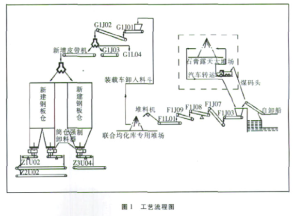 脫硫石膏經(jīng)處理后成為β一半水石膏即建筑石膏,以此為原料可生產(chǎn)多種石膏制品,如:制作防水紙面石膏板和纖維石膏板。纖維石膏板是以石膏粉為主要原料,以木材纖維為加強筋,配以適量的化學(xué)添加劑制作成的一種石膏制品。該板強度高,握釘力強,具有良好的防潮性能。為了降低水泥成本,某些水泥廠已經(jīng)成功使用脫硫石膏代替天然石膏生產(chǎn)水泥,并取得了良好的經(jīng)濟效益。基于此,廣州市珠江水泥有限公司于2007年8月開始進行使用脫硫石膏代替天然石膏項目的改造, 脫硫石膏的應(yīng)用方式如圖1所示: