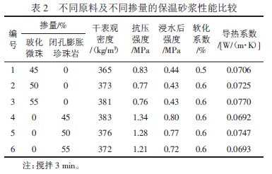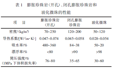 2 玻化微珠和閉孔膨脹珍珠巖作為保溫砂漿原料的性能比較