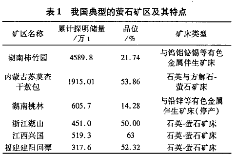 我國螢石資源豐富, 螢石基礎(chǔ)儲量1.1 億t , 占全球24 % , 居世界第三位, 次于南非和墨西哥;我國螢石礦品位一般在35 % 一4 0% ; 其中品味大于65 % 的富礦只有3 0 0萬t , 約占保有儲量的23.8% ; 而大于 80 % 的高品位富礦不到1000萬t 。