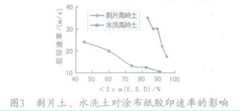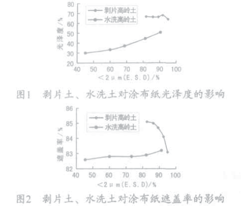 從圖1~3 中,我們不難看出:同等粒度條件下,剝片高嶺土在涂布紙的光澤度、遮蓋率以及膠印速率方面,都表現(xiàn)出比水洗高嶺土更加優(yōu)異的性能,是較理想的涂布造紙涂料產(chǎn)品,有著廣泛的應(yīng)用價值。