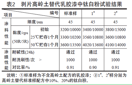 剝片高嶺土在乳膠漆中具有更好的遮蓋率,是良好涂料填料,可以達到部分替代鈦白粉的功能(表2)。