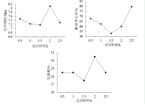 2.2反應(yīng)時(shí)間對(duì)填充EVA復(fù)合材料性能的影響