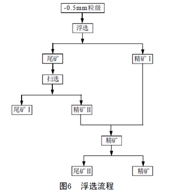 由于碎云母樣品的加工和分析到目前還沒有規(guī)范要求,也沒有比較成熟的方法可以借鑒。現(xiàn)在評價過程中采用的是:首先進行樣品加工試驗,根據(jù)礦石中礦物成分及其不同的物理性質(zhì),采用鄂式破碎機兩次粗碎,然后用對輥破碎機中碎,目的是將礦石中的石英、長石等礦物壓碎并與云母完全解離,而云母盡可能少受破壞。試驗證明對輥破碎次數(shù)與礦石受風化程度、云母含量有關(guān),近地表含礦高的礦石,中碎3~4次已完全解離,堅硬且含礦率低的礦石,中碎5~6次可以解離,經(jīng)16目(1mm)、40目(0.45mm)、80目(0.2mm)三種標準篩進行篩分。后在雙目鏡下鑒定,+16目云母含量在98%以上;-16目和+40目級云母含量在85%以上;-40目和+80目級以長石、石英為主,占50%以上;-80目級主要是長石、石英,云母含量<10%。經(jīng)碎樣試驗,云母在+40目以上級富集。對-40目以下級進行了分級浮選和淘洗及混合浮—淘選,結(jié)果混合淘選效果更好,最后確定樣品加工流程如下: