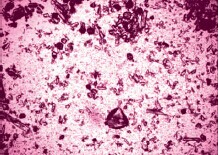 料形態(tài),試驗中采用光學顯微鏡對不同設備生產(chǎn)的樣品進行不同倍率的觀察,雷蒙磨樣品(PALZ)如圖2 所示,球磨機生產(chǎn)的樣品(PAQZ)如圖 3 所示。