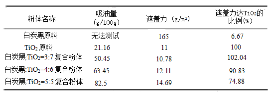 表1 原料及復(fù)合粉體吸油量、遮蓋力對比表
