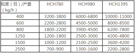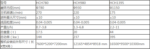 HCH系列超細(xì)環(huán)輥磨粉機(jī)的技術(shù)參數(shù)