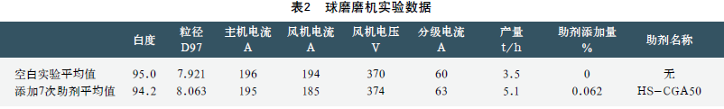產(chǎn)量:在研磨助劑添加量是0.057%時(shí),每小時(shí)產(chǎn)量增加2.0t,月增長(zhǎng)57%。