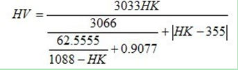 (1)以相同硬度的物體對努氏維氏兩種壓頭具有相等的抗力為依據(jù),分別對維氏努氏兩種壓頭在加載荷下的應(yīng)力進行推導,再根據(jù)σHK=σHV得出:HV=0.968HK。本公式是在低載荷下測得,誤差比較大。此外在硬度值大于HV900時此公式誤差很大,失去參考價值。