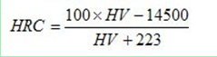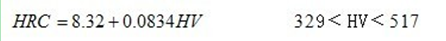 此公式用我國公布的黑色金屬硬度標準數(shù)據(jù)進行換算,其HRC誤差基本上在±0.4 HRC 范圍內(nèi),其最大誤差也僅士0.9HRC,計算的HV誤差最大為±15HV。