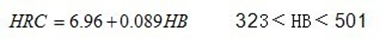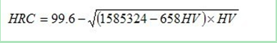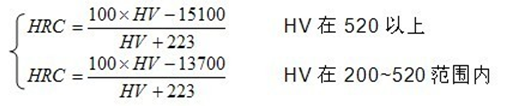 本公式與國家標準實驗換算值對照,換算式計算結(jié)果與標準實驗值之誤差為±0.1HRC。