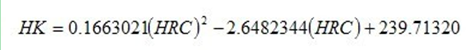 因為努氏硬度與洛氏硬度的對應(yīng)曲線類似于拋物線,故由曲線得出近似的換算公式為: