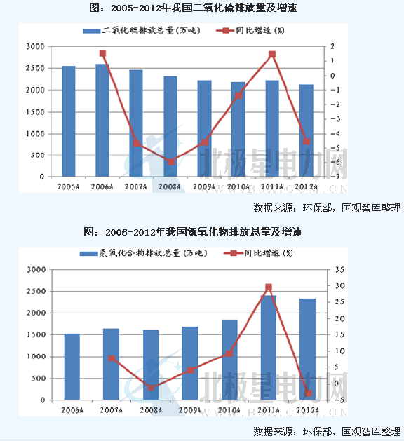 至2013年11月初以來(lái),我國(guó)平均霧霾天數(shù)較常年同期偏多2.3天,創(chuàng)1961年以來(lái)的新高。近年來(lái),我國(guó)廢氣排放治理初見(jiàn)成效,具體而言:2012年二氧化硫排放總量2117萬(wàn)噸,同比下降4.52%,總體呈下降趨勢(shì),但其排放量超過(guò)環(huán)境容量一倍,且遠(yuǎn)高于美國(guó)1036萬(wàn)噸和歐盟27國(guó)568萬(wàn)噸的水平;氮氧化物排放總量為2338萬(wàn)噸,較2011年的2404萬(wàn)噸下降2.77%,其中工業(yè)源排放占比70.93%,其次是機(jī)動(dòng)車排放占比27.38%。