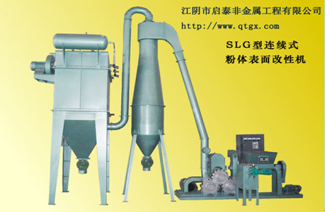 SLG連續(xù)式粉體表面改性機是由江陰市氣態(tài)非金屬工程有限公司聯(lián)合中國礦業(yè)大學(xué)自主研發(fā)的一款用于各種無機粉體表面處理的深加工設(shè)備,其主要技術(shù)指標(biāo)達到國際先進水平,用于d97≤10μm超細輕(重)質(zhì)碳酸鈣、煅燒高嶺土的表面改性,已獲得多項國家專利。自研發(fā)成功以來,已有500多臺(套)改性機用于各種粉體行業(yè),并出口到俄羅斯、烏茲別克斯坦、馬來西亞、尼日利亞、印度尼西亞、阿聯(lián)酋、約旦、緬甸等十幾個國家是非金屬礦物粉體改性的首選設(shè)備!