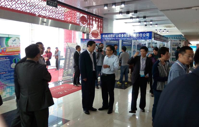 中國非金屬礦工業(yè)協(xié)會會長胡勤和咸陽非金屬礦研究設(shè)計院院長張明在展覽會現(xiàn)場