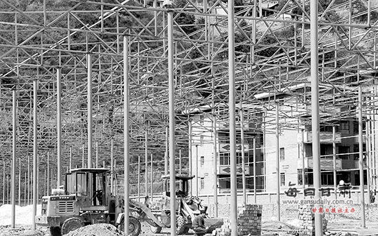 (中國(guó)粉體技術(shù)網(wǎng)/班建偉)華亭縣天潤(rùn)建材石膏生產(chǎn)線項(xiàng)目建設(shè)現(xiàn)場(chǎng)工人正在搭建生產(chǎn)廠房。投資5000萬(wàn)元的天潤(rùn)建材石膏生產(chǎn)線項(xiàng)目是華亭縣2015年全縣循環(huán)經(jīng)濟(jì)重點(diǎn)項(xiàng)目之一,項(xiàng)目建成后,年可利用電廠脫硫石膏15萬(wàn)噸,提供就業(yè)崗位100個(gè)。