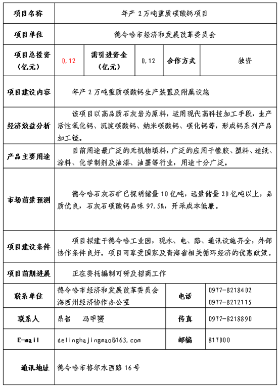 青海省年產(chǎn)2萬(wàn)噸重質(zhì)碳酸鈣項(xiàng)目招商