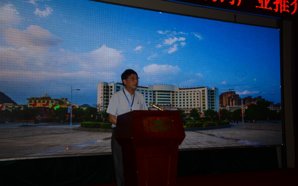 賀州市市長(zhǎng)李宏慶在介紹碳酸鈣產(chǎn)業(yè)相關(guān)情況
