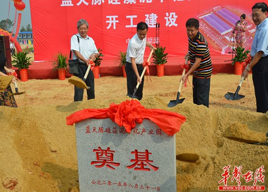 8月31日上午,藍(lán)天豚硅藻泥千億產(chǎn)業(yè)園項(xiàng)目在湖南湘陰奠基。圖為奠基儀式現(xiàn)場。