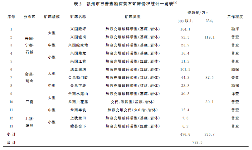 2 江西贛州螢石資源及開發(fā)利用現(xiàn)狀