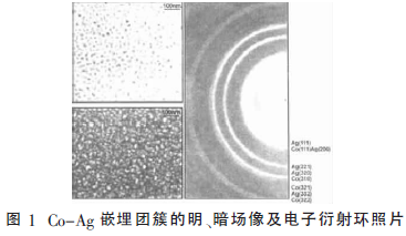 杜慶立等用透射電子顯微鏡(TEM) 清晰地看到,磁性嵌埋團簇薄膜中Co 團簇外面包裹了Ag 膜,形成了芯殼式結(jié)構(gòu),彌散地分布于Ag 基質(zhì)中,基本沒有發(fā)生自聚集現(xiàn)象,電子衍射環(huán)表明Co 團簇為多晶(圖1)。丁秀云等用TEM 對鐵氧體磁性粒子結(jié)構(gòu)進行了表征。磁性粒子的TEM 照片中,樣品粒子外形為粒子狀形態(tài)且分散較好,顆粒較均勻,粒度分布較窄。TEM 作為磁流體表征的直接手段,將隨磁流體技術(shù)共同推動磁選理論與技術(shù)的發(fā)展。