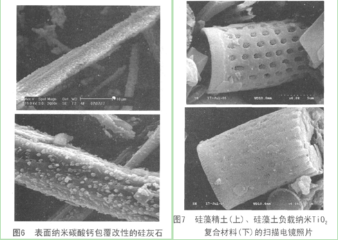 國(guó)家“十一五”科技支撐重點(diǎn)項(xiàng)目“優(yōu)勢(shì)非金屬礦資源高效利用技術(shù)研究2006BAB12B01”針對(duì)硅灰石填料在工程塑料中應(yīng)用存在的問(wèn)題開(kāi)發(fā)了一種表面納米硅酸鋁包覆改性的復(fù)合硅灰石礦物纖維(圖5)。