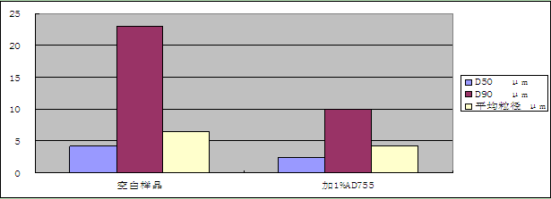 二、粉體表面改性劑AD755在輕鈣上的改性效果: