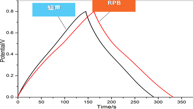 結(jié)果顯示:旋轉(zhuǎn)床方法制備的石墨烯比電容量為225F/g,而超聲方法制備為175 F/g。