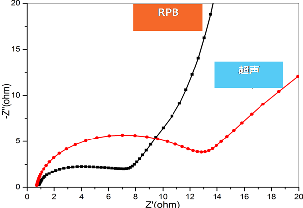 旋轉(zhuǎn)床制備的石墨烯交流阻抗值約為7.5?,超聲反應(yīng)釜制備的石墨烯交流阻抗值約為14?,阻抗值更小,導電率更大,采用四探針法測定的石墨烯平均電導率,RPB剝離的為312.8 S/m,超聲反應(yīng)釜的為278.1 S/m 。