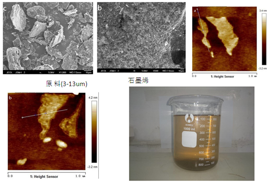 橫向尺寸150nm, 厚度3-9層,濃度:0.3mg/ml; 產(chǎn)率:3%; 溶劑為水