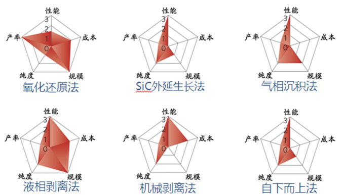 圖2 石墨烯制備方法優(yōu)缺點比較