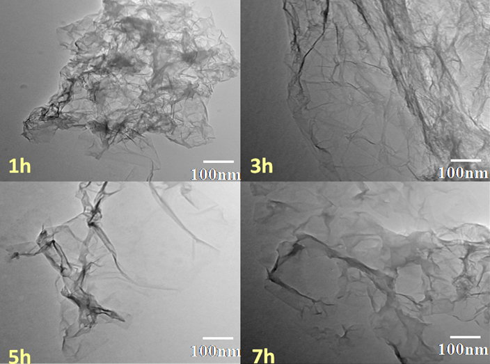 圖7 不同剝離時間制備的氧化石墨烯TEM照片