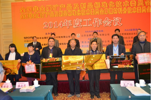 國標委領導宣讀了國家標準委標委辦綜合函[2014]211號“關于摩擦材料分技術委員會換屆及組成方案的復函,并向摩擦材料分技術委員會主要負責同志頒發(fā)了證書。