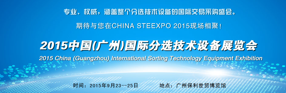 全球分選設(shè)備行業(yè)的頂級(jí)盛會(huì)“2015中國(guó)(廣州)國(guó)際分選技術(shù)設(shè)備展覽會(huì)”在中國(guó)果品流通協(xié)會(huì)、中國(guó)食品學(xué)會(huì)、中國(guó)化工行業(yè)協(xié)會(huì)、中國(guó)制藥裝備行業(yè)協(xié)會(huì)、中國(guó)建材工業(yè)協(xié)會(huì)、中國(guó)陶瓷工業(yè)協(xié)會(huì)、中國(guó)有色金屬工業(yè)協(xié)會(huì)、中國(guó)砂石協(xié)會(huì)的大力支持下,由中國(guó)國(guó)際商會(huì)機(jī)械行業(yè)分會(huì)、中國(guó)機(jī)械制造工業(yè)協(xié)會(huì)、中國(guó)跨國(guó)采購(gòu)中心、上海紫奧展覽服務(wù)有限公司等單位共同組織下將于9月23-25日在廣州保利世貿(mào)博覽館隆重舉辦。
