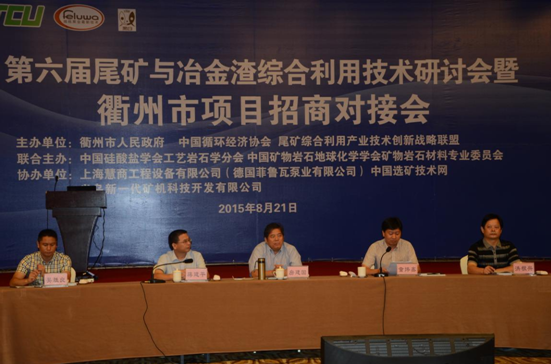 繼第六屆尾礦與冶金渣綜合利用技術(shù)研討會于昨日成功召開后,2015年8月21日上午,衢州市項目招商對接會在衢州國際大酒店舉行。在中國循環(huán)經(jīng)濟協(xié)會的有力組織和衢州市人民政府的強力號召下,衢州市項目招商對接會有將近100位代表參加,項目對接會后,本屆大會正式落下帷幕。