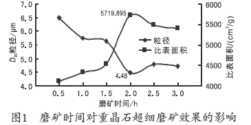2.1.2 磨礦時間對重晶石粉超細磨礦的影響:
