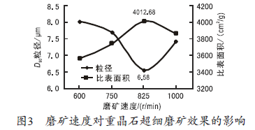2.1.4 磨礦速度對重晶石粉超細磨礦的影響: