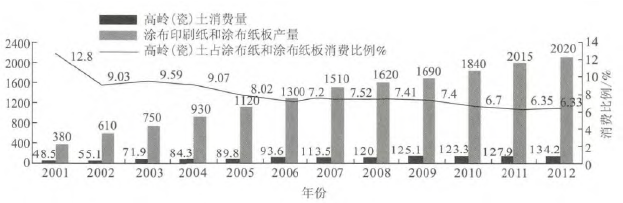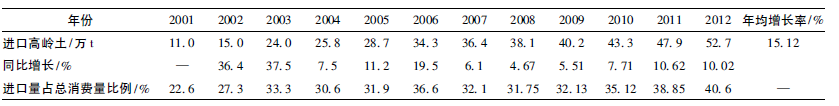 圖1 2001—2012 年間高嶺( 瓷) 土消費(fèi)趨勢(shì)