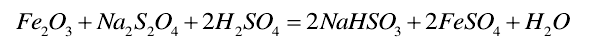 在 pH 值=6~7 時,大量生成的 Na2S2O4非常穩(wěn)定。隨后 pH 值降低時,Na2S2O4立即與高嶺土礦漿體系中的 Fe2O3反應(yīng),避免了 Na2S2O4的分解損失。此方法因使用的 SO2氣體,若泄漏將污染大氣,不易在工業(yè)生產(chǎn)中大量使用。