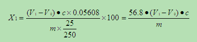 以質(zhì)量百分?jǐn)?shù)表示的鐵(Fe)含量X4按下式計(jì)算: